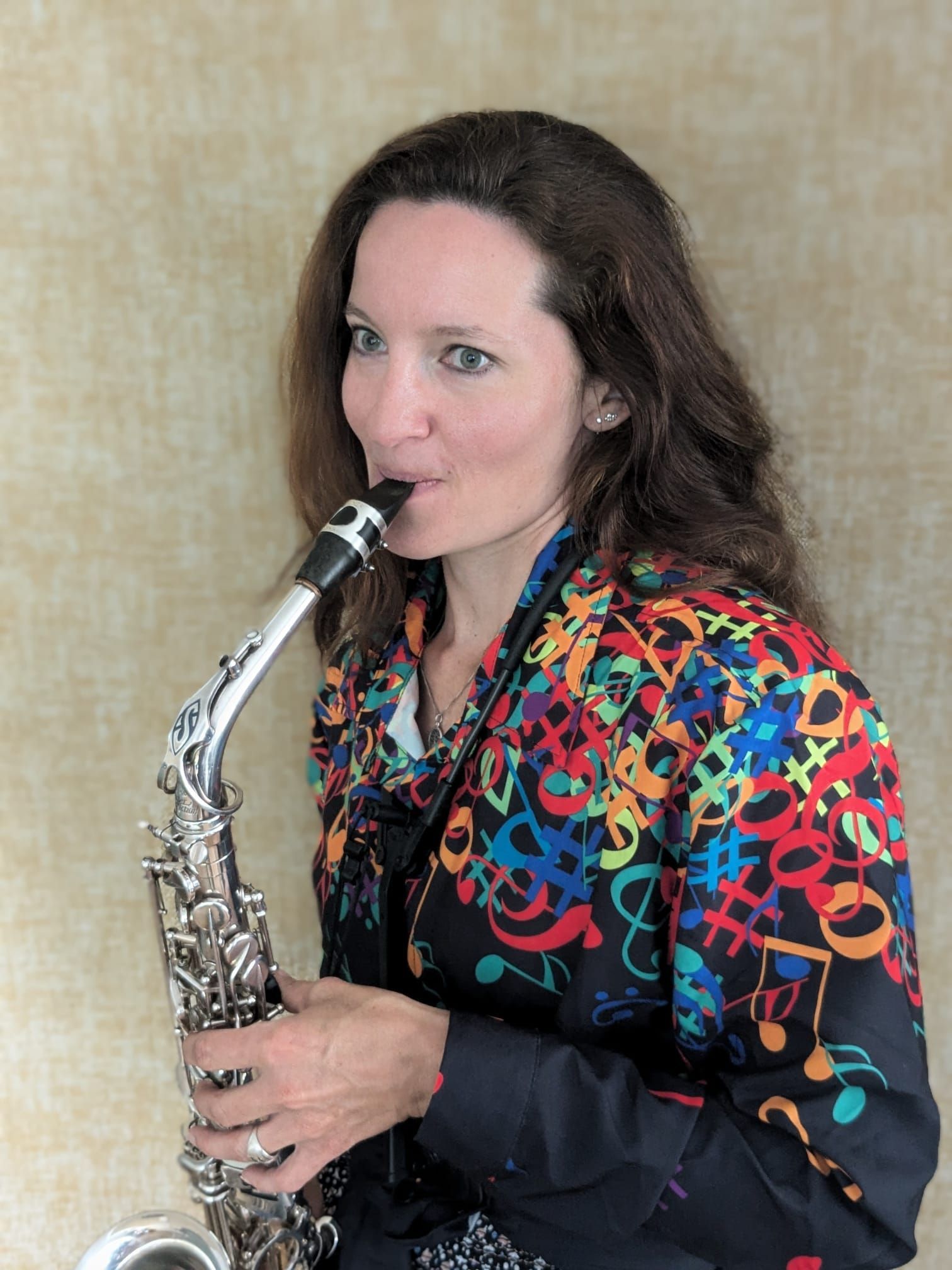 De jongste telg in ons bestuur is Cindy Barten. Ze speelt vol vuur op haar alt-saxofoon. Cindy Dulfer wordt ze ook wel eens genoemd.